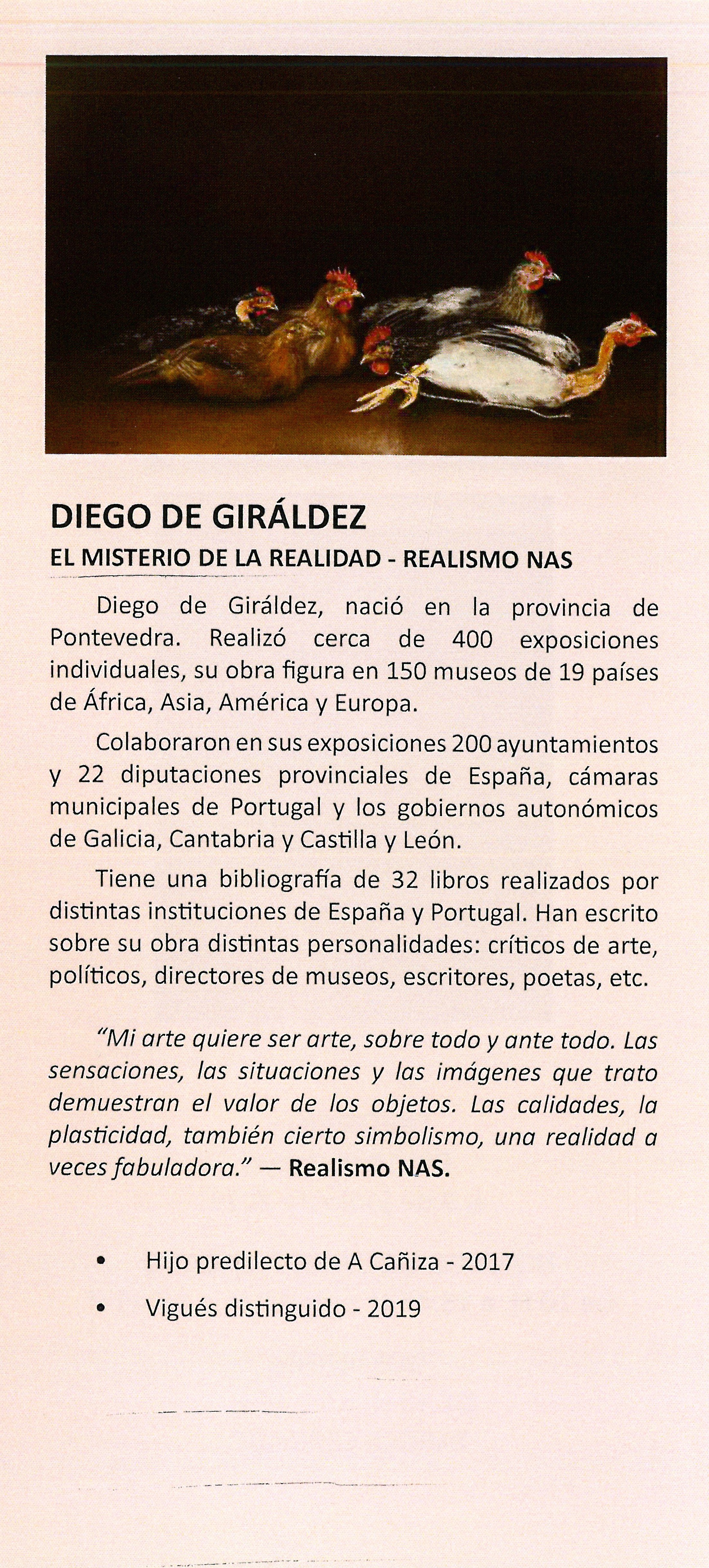 Diego de Giráldez (A Cañiza 1956) Pintor español. Es el creador del movimiento NAS, en estos momentos, la figura más representativa del nuevo realismo NAS. Autodidacta, asistió a clases de dibujo en la Escuela de Artes y Oficios en la ciudad Vigo, en la que ganó varios premios de dibujo y carboncillo, posteriormente se trasladó a Olot-Gerona. Se formó en artes aplicadas y triunfó como autor de pinturas de gran formato con excelente dibujo.